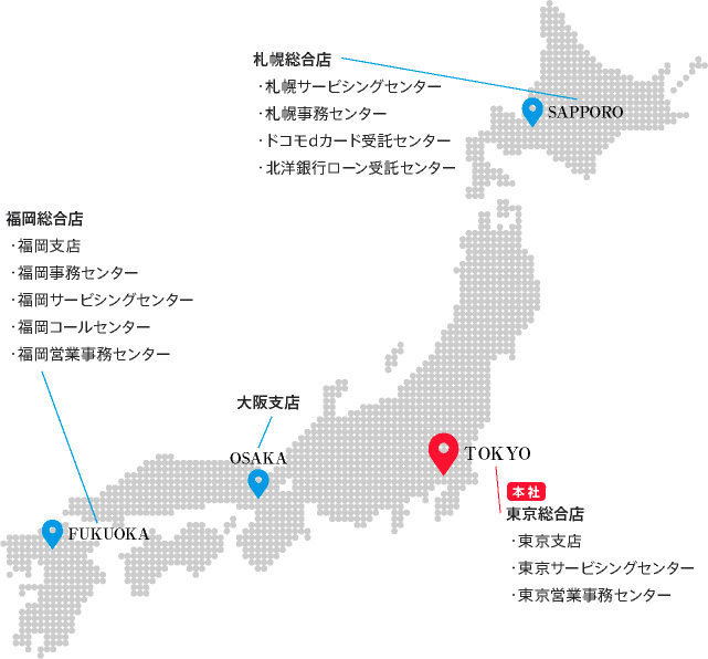ニッテレ・サービサーは3支店、3サービシングセンター、1コールセンター、2事務センター他を展開しています。